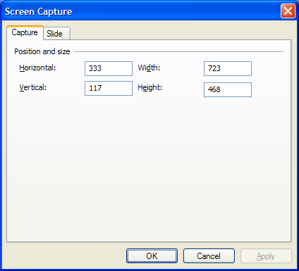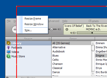ومع ذلك، فإن بعض البرامج لا تسمح بالقيام بذلك. في هذه الحالة، يمكنك ضبط النافذة المراد التقاط شاشتها يدوياً. يمكنك تعديل منطقة نافذة الالتقاط من خلال سحب الإطار الاحمر أو من خلال القائمة تنسيق حتى يتناسب الإطار مع النافذة المراد التقاط شاشتها.