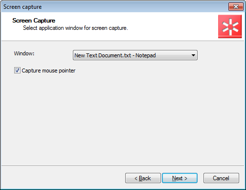 من القائمة المنسدلة حدد البرنامج لتسجيل المحاكاة . حدد على خيار التقاط المؤشر اذا كنت بحاجة الى لتسجيل ضغطات الماوس , و الحركات . الضغطات و الحركات سيتم التقاطها تلقائياً بمجرد بدء التسجيل .