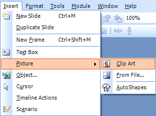 أو من خلال "Insert Clip Art Icon" اختيار الرمز الموجود في شريط الأدوات .