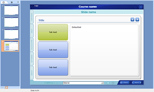 Use Tab and Shift+Tab to move name of the selected Slide to the right or to the left accordingly. In such a way, you can create simple Slide's hierarchy, which can be shown during playback of the Module.