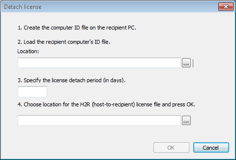 يمكن الترخيص مؤقتا فصل فقط على الكمبيوتر المضيف. ليس هناك إمكانية لفصل ترخيص من الكمبيوتر المتلقي ونعلق عليه لبعض الكمبيوتر الثالثة (أي تتالي فصل). إذا كنت بحاجة إلى رخصة لبعض إرفاق الكمبيوتر الثالث، إعادته إلى المضيف أولا ثم بدء إجراءات المعتادة فصل جهاز كمبيوتر آخر.