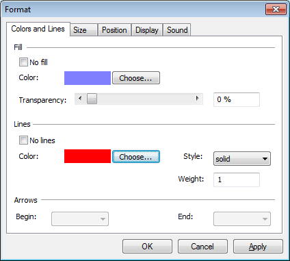عند إدراج أي كائن في إطار، يتم وضعها في العنصر النائب مستطيلة. استخدام "اللون" علامة على الشاشة "تنسيق" لتحديد لون خلفية العنصر النائب. نلاحظ أن هذه المعايير تتعلق فقط في العنصر النائب الكائن بدلا من الكائن نفسه. إذا اعترض تناسب العنصر النائب كامل مستطيلة (للصور مثلا)، فمن المناسب لتحديد لون خلفية العنصر النائب إلا عندما تحتوي على صور المناطق شفافة.