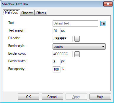 النص المظلل تمكنك من وضع نص مع تعديل في طريقة العرض (بما في ذلك اثار الظل) . بالمقارنة بين النص المظلل والنص العادي فإن هذا الكائن يسمح لك باستخدام مؤثرات خاصة على النص .