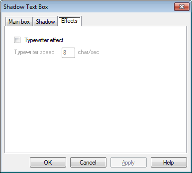 في التبويب "تأثيرات" بإمكانك استخدام الخيار " تأثير الآلة الكاتبة" وسيظهر النص حينها في نافذة العرض وفق تآثير الآلة الكاتبة.