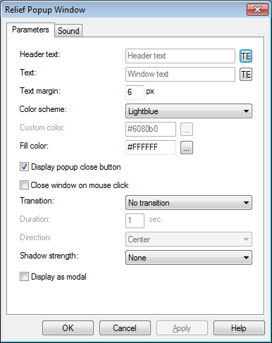 الكائنات > الكائنات المركبة > النوافذ المنبثقة > نافر