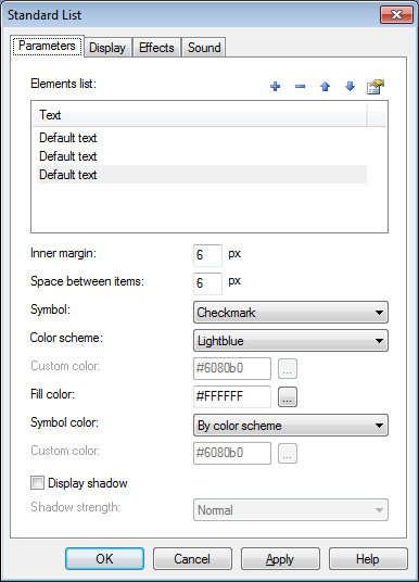 في التبويب "برامترات" يمكن إضافة بنود القائمة واختيار لون الحدود المناسب للكائن.