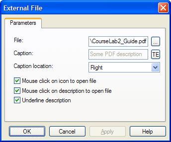 املأ الحقل عنوان والذي سيظهر بجانب الأيقونة التي من الممكن فتح الملف الخارجي من خلالها، ويمثل حقل "عنوان" وصف مختصر لهذا الملف.