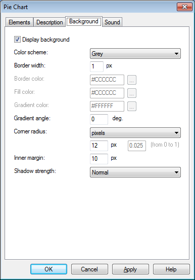 في التبويب"خلفية" يمكن ضبط لون الخلفية الخاصة بالكائن وتحديد سماكة و لون الحدود و الهوامش الداخلية و نظام الألوان.