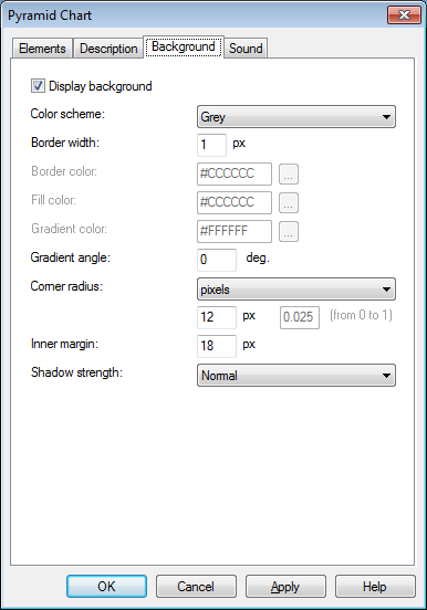 في التبويب"خلفية" يمكن ضبط لون الخلفية الخاصة بالكائن وتحديد سماكة و لون الحدود و الهوامش الداخلية و نظام الألوان.