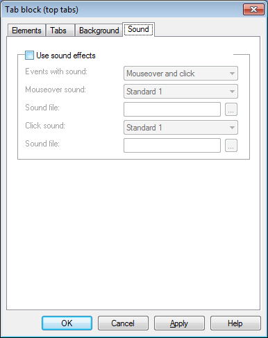 في التبويب "الصوت" يمكنك تشغيل او ايقاف خاصية الصوت بالإضافة إلى التخصيص وذلك عند النقر بزر الماوس او عند المرور فوق الكائن