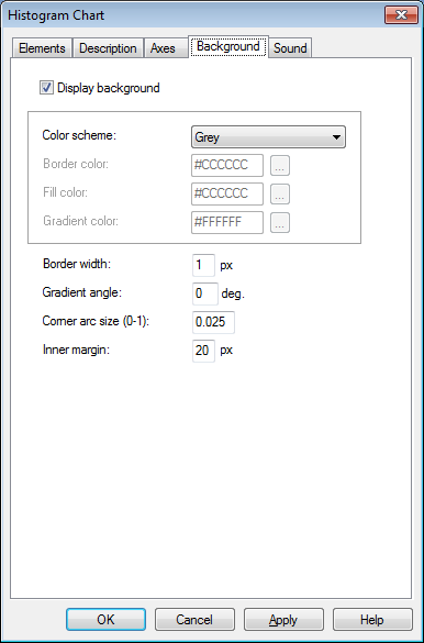 في التبويب"خلفية" يمكن ضبط لون الخلفية الخاصة بالكائن وتحديد سماكة و لون الحدود و الهوامش الداخلية و نظام الألوان.