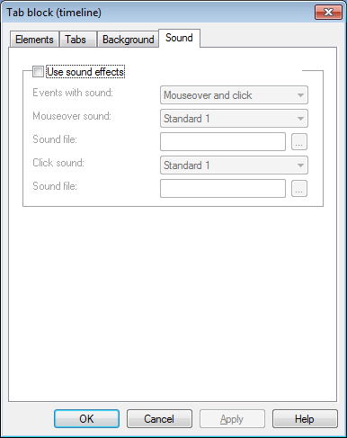 في التبويب "الصوت" يمكنك تشغيل او ايقاف خاصية الصوت بالإضافة إلى التخصيص وذلك عند النقر بزر الماوس او عند المرور فوق الكائن