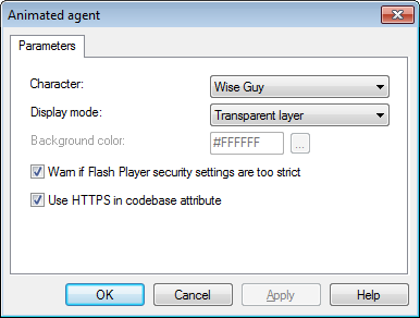 يمكن تحديد مظهر الشخصية و طريقة ظهورها بشكل مشابه لاعدادات الكائن فلاش - فيديو.
