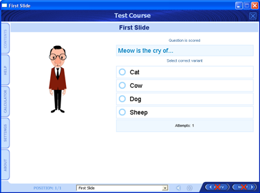 فعندما يكون لدينا كائن أسئلة وكائن شخصية رسومية أيضاً ضمن إطار أو شريحة واحدة. سيقوم هذا الكائن بتغيير حالته الفيزيولوجية والنفسية لمساعدتك حتى تتمكن من اختيار الإجابة الصحيحة.