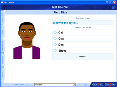 في الشكل المرفق لدينا سؤالان ، ونريد أن تجسد الشخصية المجاورة للأسئلة حالة متغيرة تلائم إجابة المتعلم لكل سؤال وتتغير بتغير الإجابة.