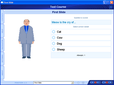 فعندما يكون لدينا كائن أسئلة وكائن شخصية رسومية أيضاً ضمن إطار أو شريحة واحدة. سيقوم هذا الكائن بتغيير حالته الفيزيولوجية والنفسية لمساعدتك حتى تتمكن من اختيار الإجابة الصحيحة.