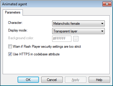 يمكن تحديد مظهر الشخصية و طريقة ظهورها بشكل مشابه لاعدادات الكائن فلاش - فيديو.