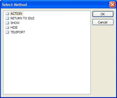عند تحديد الخيار "تلقائي" فإن الكائن سيعود تلقائياً لوضع الخمول بعد الانتهاء من تنفيذ الاجرائية. أما عند اختيار "الانتظار حتى يعاد الاجراء" فإن الكائن سيقوم بتنفيذ الاجراء ولن يعود لحالة الخمول حتى يتم اختيار الميثود "العودة إلى حالة الخمول" الموجود ضمن الاجراء METHOD.
