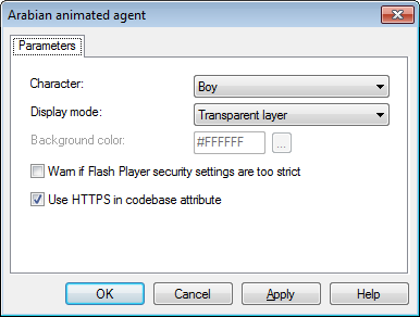 يمكن تحديد مظهر الشخصية و طريقة ظهورها بشكل مشابه لاعدادات الكائن فلاش - فيديو.