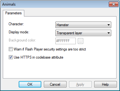 يمكن تحديد مظهر الشخصية و طريقة ظهورها بشكل مشابه لاعدادات الكائن فلاش - فيديو.