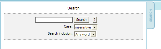 يحتوي شريط البحث على معالج البحث حيث يمكن تعطيل خاصية تحسس حالة الأحرف و ضبط خيار البحث المنطقي و ضبط خيار البحث