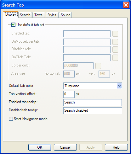 يمكن استخدام الخيار استخدام إعدادات التبويب الافتراضي كما يمكن تعيين لون التبويب الافتراضي، تلميح الأداة .
