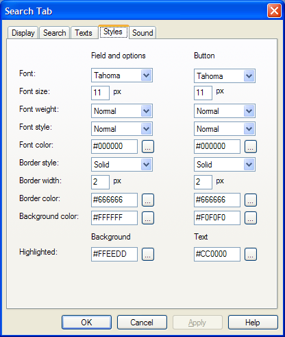 يمكن تخصيص الخيار استخدام إعدادات التبويب الافتراضي وتغيير الصور الافتراضية، عرض الحدود، و اللون .