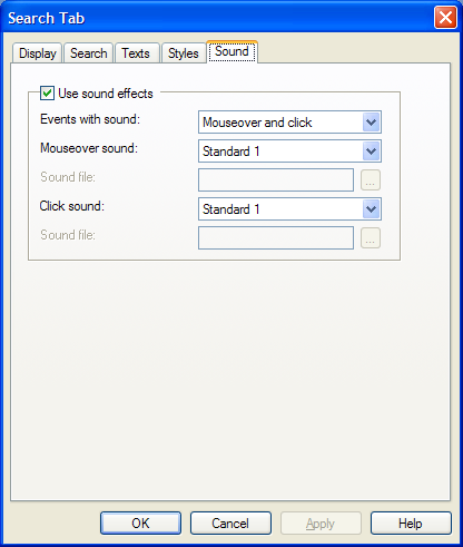 في التبويب "الصوت" يمكنك تشغيل او ايقاف خاصية الصوت بالإضافة إلى التخصيص وذلك عند النقر بزر الماوس او عند المرور فوق الكائن