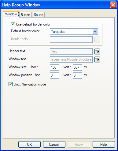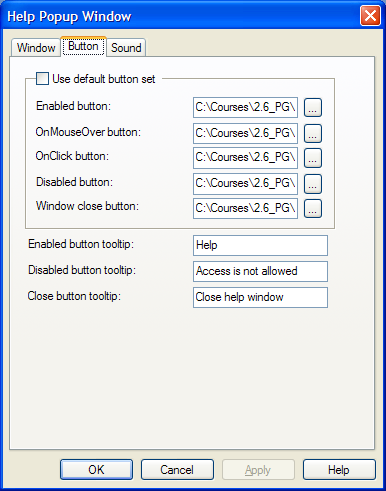 يمكن تخصيص أيقونات النافذة الافتراضية أو استخدام الأيقونات الافتراضية للكائن من خلال الخيار "استخدم إعدادات الزر الافتراضية"