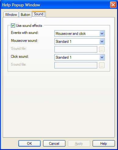 في التبويب "الصوت" يمكنك تشغيل او ايقاف خاصية الصوت بالإضافة إلى التخصيص وذلك عند النقر بزر الماوس او عند المرور فوق الكائن
