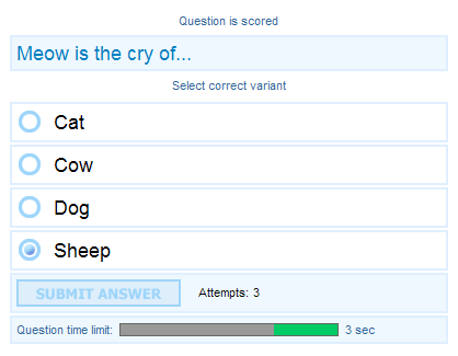 | انتهاء السؤال | After answer is evaluated and no more attempts left (on timeout or on attempts limit) |
