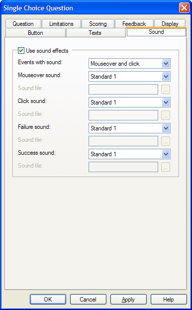 في التبويب "الصوت" يمكنك تشغيل او ايقاف خاصية الصوت بالإضافة إلى التخصيص وذلك عند النقر بزر الماوس او عند المرور فوق الكائن
