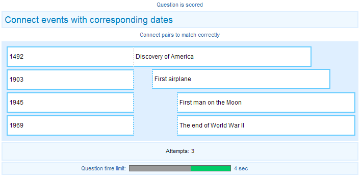 | انتهاء السؤال | After answer is evaluated and no more attempts left (on timeout or on attempts limit) |