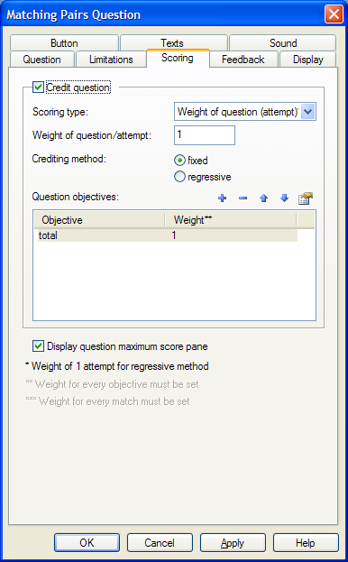يستخدم شريط النقاط لتحديد درجة السؤال و في حال لم يتم تحديد درجة السؤال فسيتم تجاهل الدرجة عند الانتهاء من الامتحان و هذا النوع من الاسئلة كثيراً ما يستخدم من أجل الحفاظ على تركيز المتعلم.