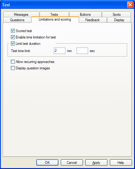 في تبويب القيود والنقاط يمكن تعيين الاختبار على أنه اختبار معتمد يستخدم هذا الخيار عادة في حال الربط مع أنظمة التعليم الإلكتروني.