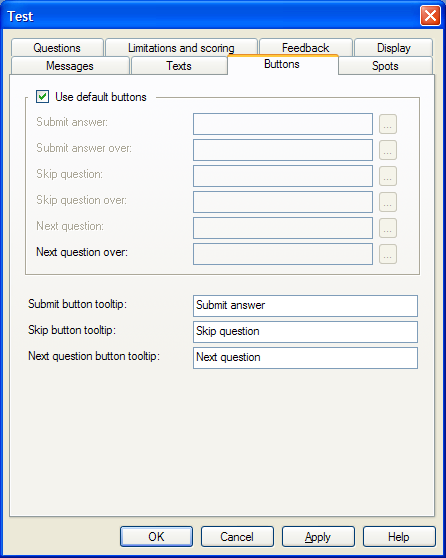 في التبويب "زر" يمكن تخصيص أزرار الكائن بأيقونات تقوم بإنشائها لتكون بديلا عن الأيقونات الافتراضية.