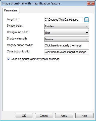 Image thumbnail with magnification feature is used to display magnified image on user click. Picture will be sized to maximal size that is allowed by Course Template.