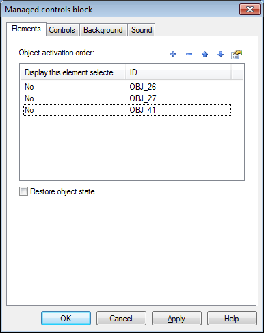 Managed controls block is used to manage consecutive display of other Objects. In case target Objects have its own methods OPEN/CLOSE (for example Pointer), these methods will be used to display them, otherwise usual action DISPLAY will be used automatically.