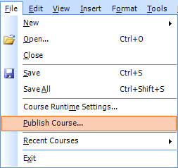 اختر ملف > نشر المقرر, تظهر قائمة فرعية لبداية نشر المقرر.