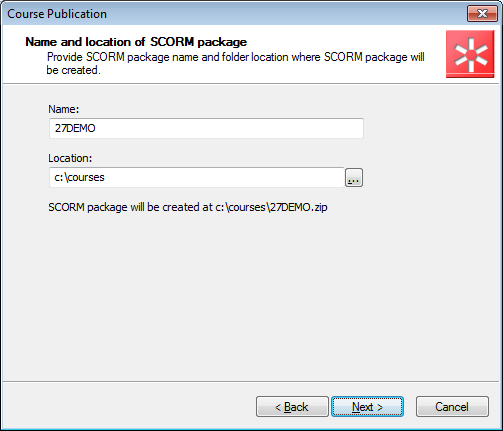 انقر على زر التالي. حدد اسم المحتوى ومسار التخزين.