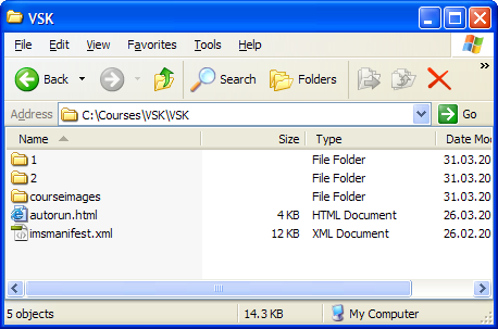 عند انتهاء النشر ستحصل على مجلد يحتوى ملفات المقرر الإلكتروني (مجلد وليس ملف مضغوط) . يحتوي هذ المجلد جميع ملفات المقرر وستجد ملف تشغيل أوتوران بسيط autorun.html حيث يحتوي الملف على روابط لجميع الوحدات التعليمية لهذا المقرر.
