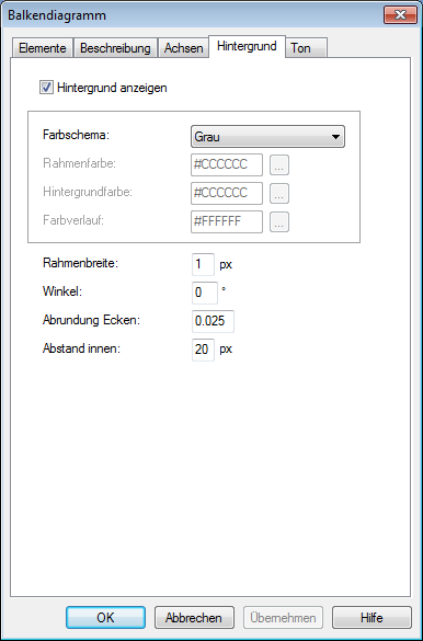 Auf der Registerkarte „Hintergrund“ können Sie die Anzeige des Hintergrunds ein- und ausschalten und seine Anzeigeparameter festlegen:
